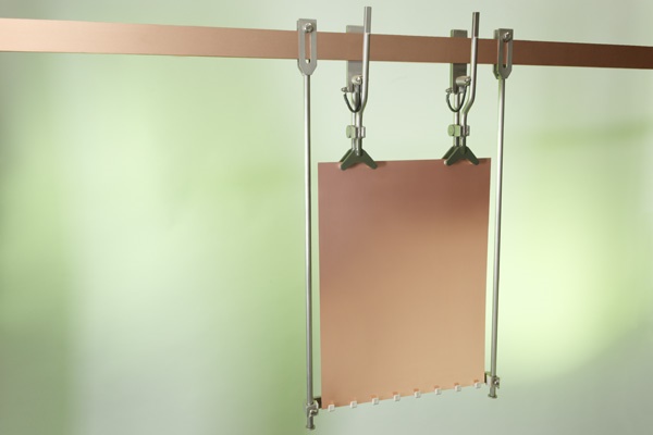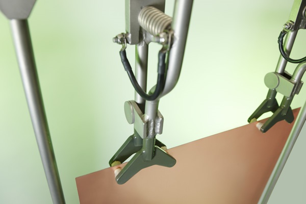 Spannende Unterzüge werden bei dünnen Leiterplatten eingesetzt. Die Leiterplatten werden am Unterzug fest verspannt. Dadurch wird gewährleistet, dass die Leiterplatte durch die Badbewegung nicht beschädigt wird und die Abscheidung gleichmäßig bleibt.