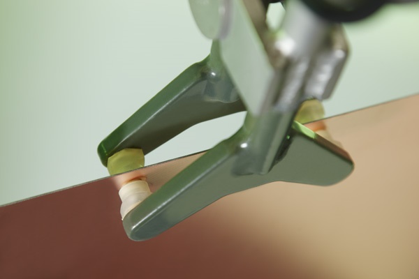 Das Öffnen der Klammer erfolgt von Hand und das Schließen wird durch eine Druckfeder ausgeführt.