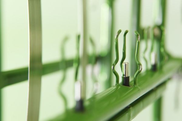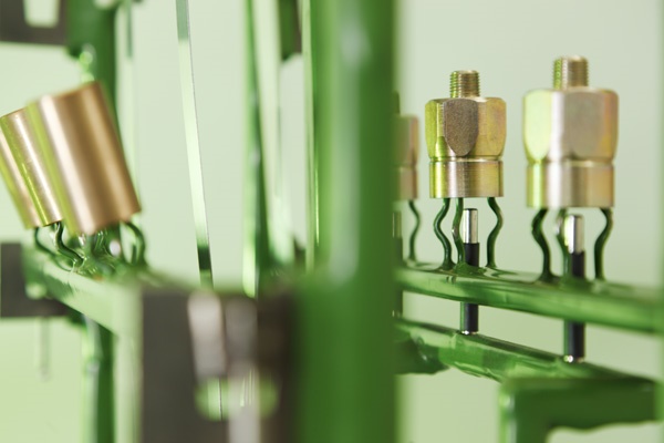 Unsere Rahmengestelle sind immer darauf ausgelegt den größtmöglichsten Durchsatz pro Warenträger zu erzielen. Eine übergeordnete Rolle spielt dabei die Kontaktierungsart der Teile. Wir achten dabei besonders auf ausreichenden Stromfluss und praktisches Be- und Entladen.